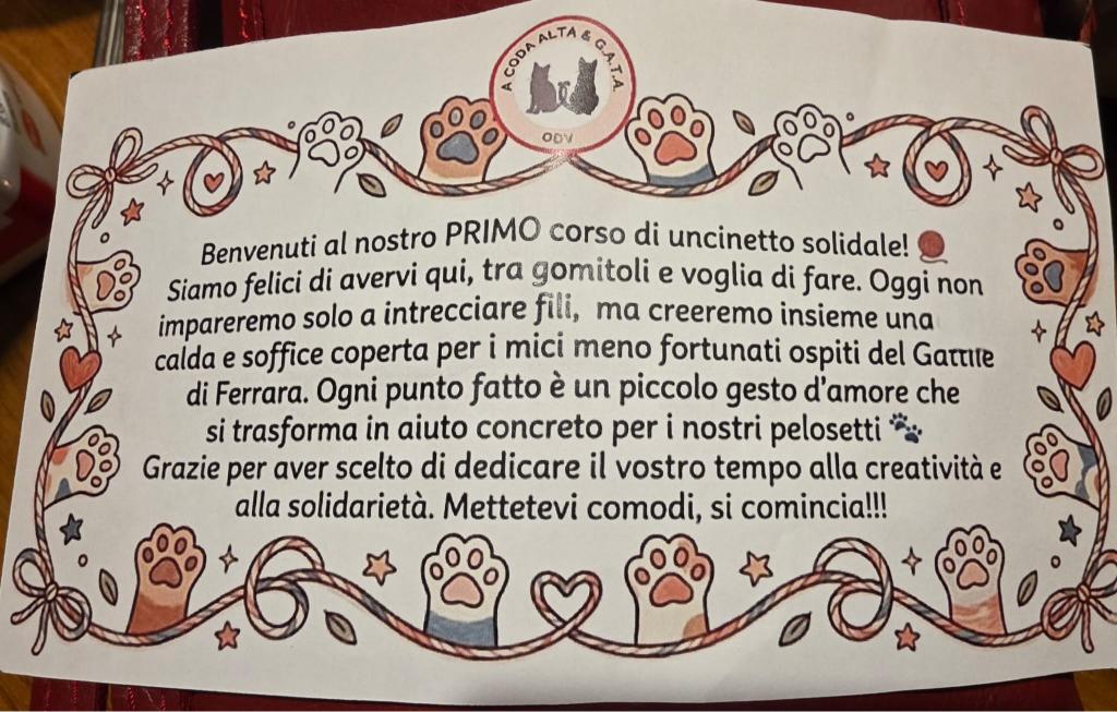 Ieri, sabato 14 marzo, si è tenuto il primo corso di uncinetto solidale, con merenda, al nostro “Cats & Coffee” presso il nostro Mercatino di via Scienze, a favore dei mici del gattile di Ferrara! ![]()